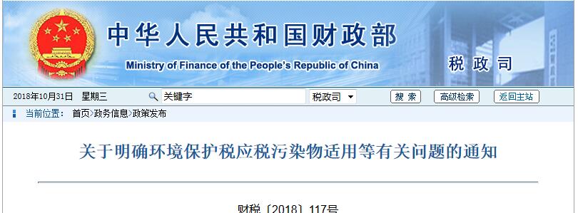 日前,財政部、稅務(wù)總局、生態(tài)環(huán)境部聯(lián)合印發(fā)通知,明確環(huán)境保護(hù)稅應(yīng)稅污染物適用等問題。